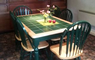 Well-equipped large kitchen with a table and six chairs, a full-size electric cooker with double oven, microwave, and all the usual small electricals, plus some extras such as a slow cooker, electric hand blender and a mixer. Plumbing restrictions mean no dishwasher, sorry!