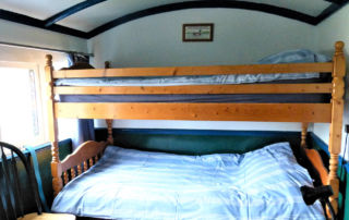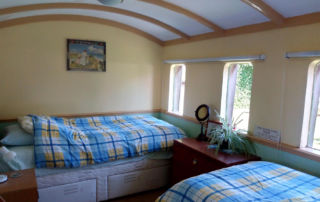 Extensively enlarged and improved in the last few years, The Patch now offers four comfortable bedrooms, all with electric heaters, hanging space and drawers. Two bedrooms downstairs are housed in the carriage – one with twin beds, the other with bunks,. Please note, there is only one shower room and toilet, which is also in the carriage next to the bunk room.