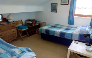 The other two bedrooms are upstairs, one with a single bed and optional folding bed, and the master bedroom with a kingsize bed and windows looking to front and back.